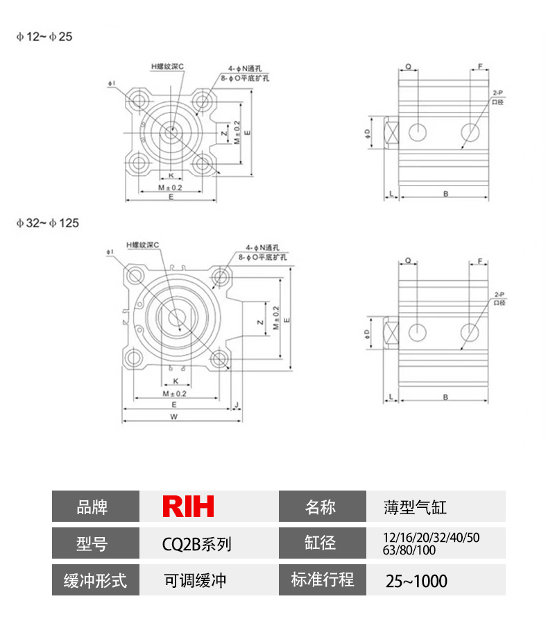 CQ2B系列型薄型氣缸