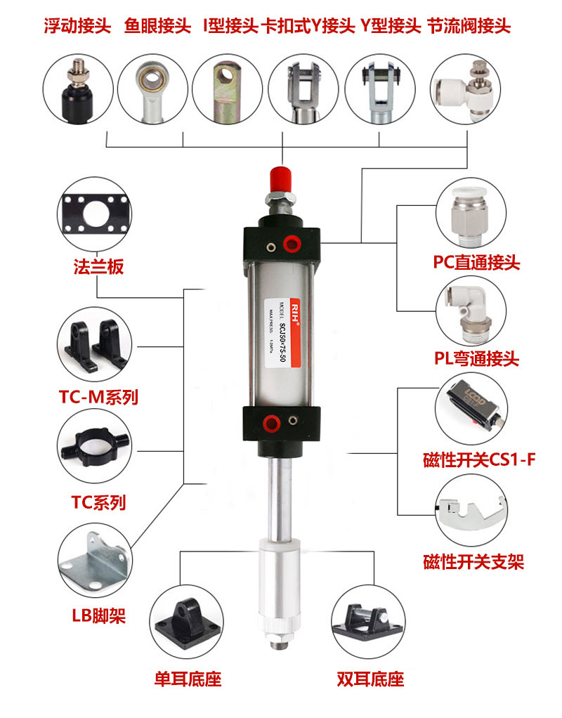 3、多種氣缸安裝附件可供選擇,靈活多變。