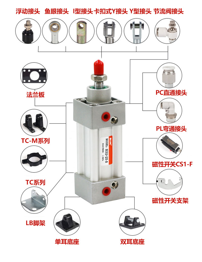 3、多種氣缸安裝附件可供選擇,靈活多變。