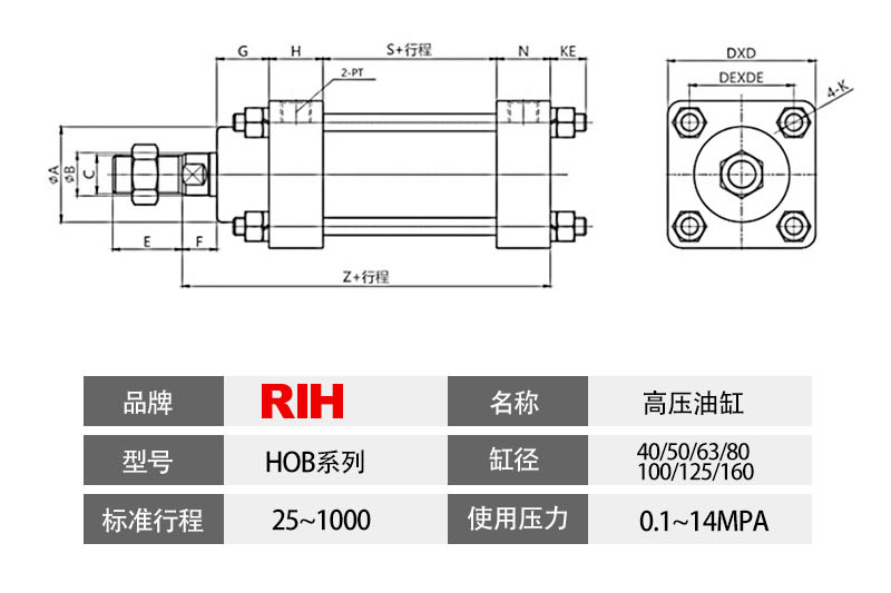 HOB重型拉桿油缸,屬于雙作用油缸,前后缸蓋通過四根螺絲桿鏈接,拆裝維修方面,常用于磨具行業、包裝機械行業等。標準HOB輕型拉桿油缸,使用壓力14MPa,試驗壓力21MPa,由于壓力屬于中高壓,油缸各個配件強度要求足夠。