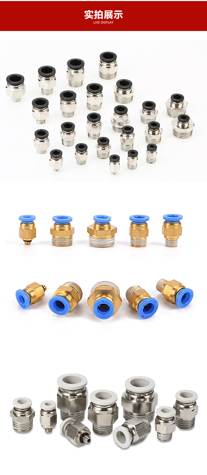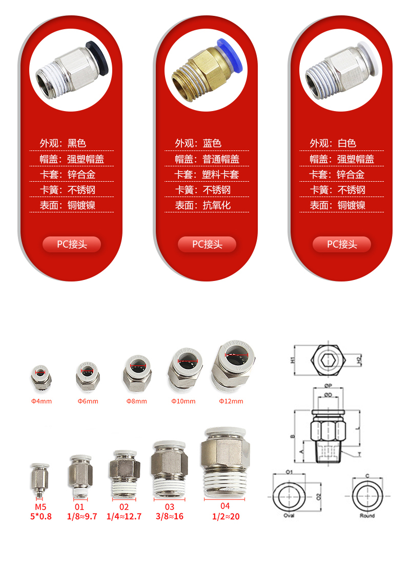 1:圓螺紋直通型結構,外觀小巧,節省安裝空間,性價比高;2:螺紋部分涂有密封劑,確保螺紋連接部分無泄漏;3:鍍鎳的筒體可以防腐蝕和污染,應用范圍更廣;4:塑料接口部分多種顏色可選,方便你調整配管需求。