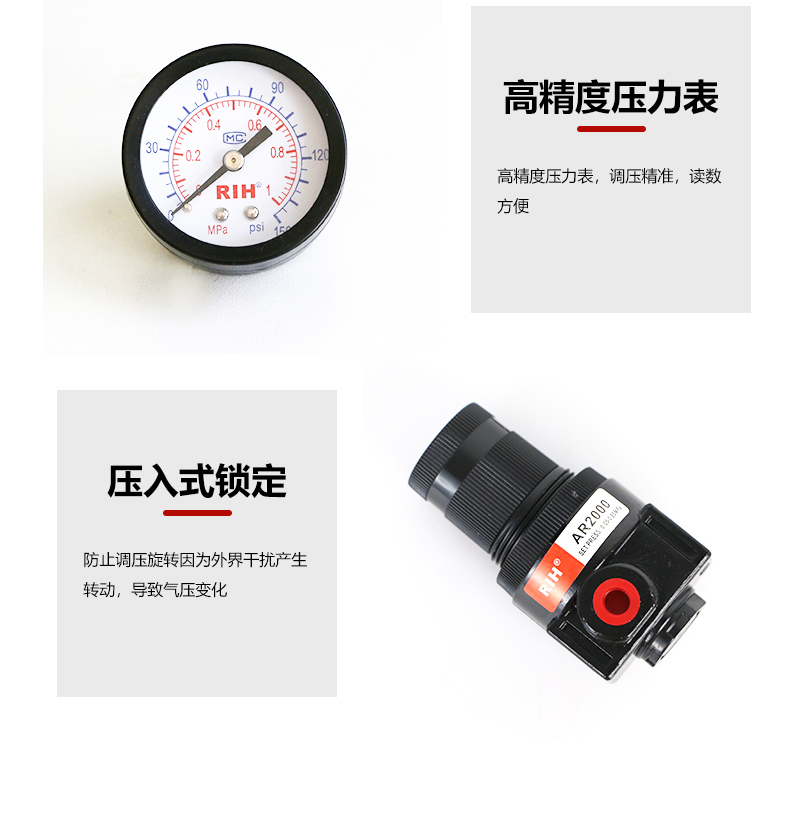 減壓閥是氣動調(diào)節(jié)閥的一個(gè)必備配件,主要作用是將氣源的壓力減壓并穩(wěn)定到一個(gè)定值,以便于調(diào)節(jié)閥能夠獲得穩(wěn)定的氣源動力用于調(diào)節(jié)控制。1、為了操作和維護(hù)方便,該閥一般直立安裝在水平管道上。2、安裝時(shí)應(yīng)注意使管路中介質(zhì)的流向與閥休上所示箭頭的方向一致。瑞亨所生產(chǎn)的AR2000亞德客型調(diào)壓閥能夠完全代替亞德客調(diào)壓閥,提供最全面的空氣過濾減壓閥選型報(bào)價(jià)及銷售。