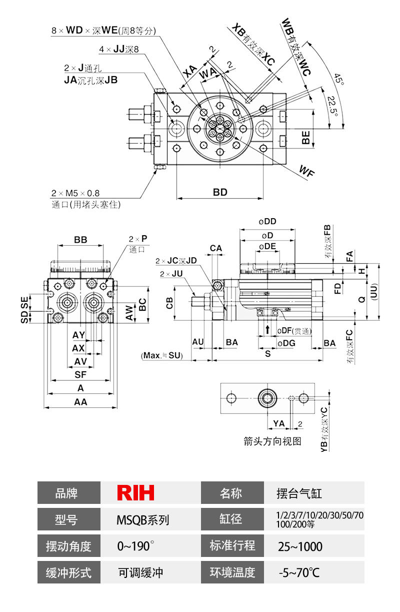 MSQB旋轉氣缸,代替SMC旋轉氣缸,180度旋轉氣缸